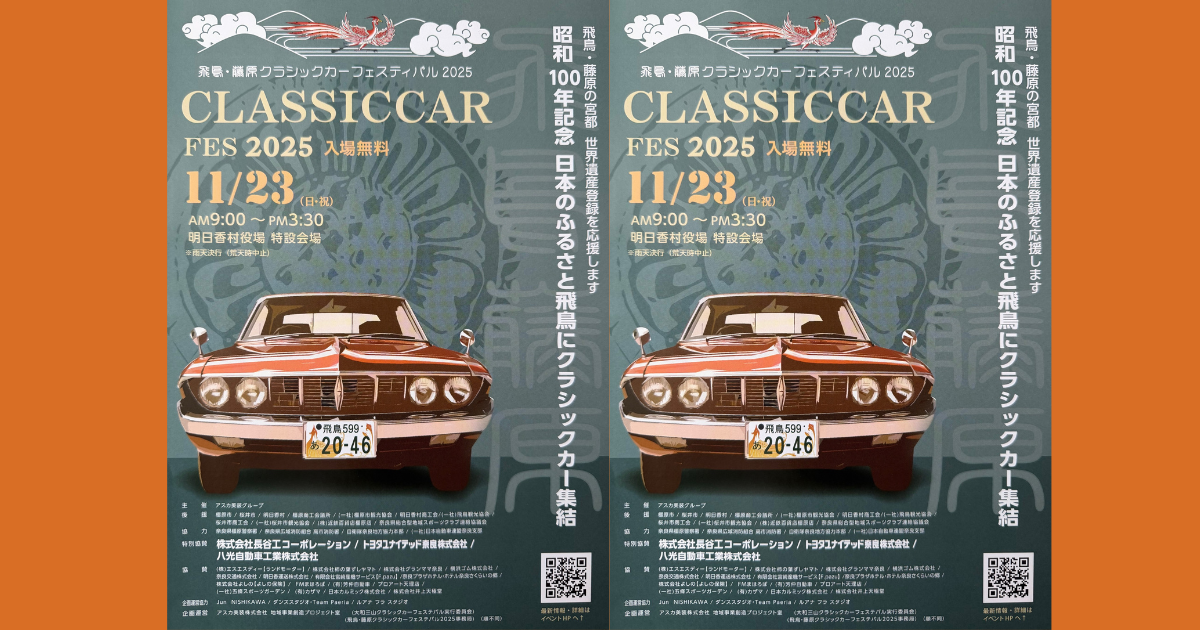 【明日香村】飛鳥・藤原クラシックカーフェスティバル2025|11月23日開催!昭和100年記念・明日香村にクラシックカー100台が集結