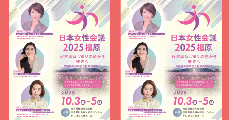 日本女性会議2025橿原が、来る2025年10月3日(金)〜5日(日)に開催されます。