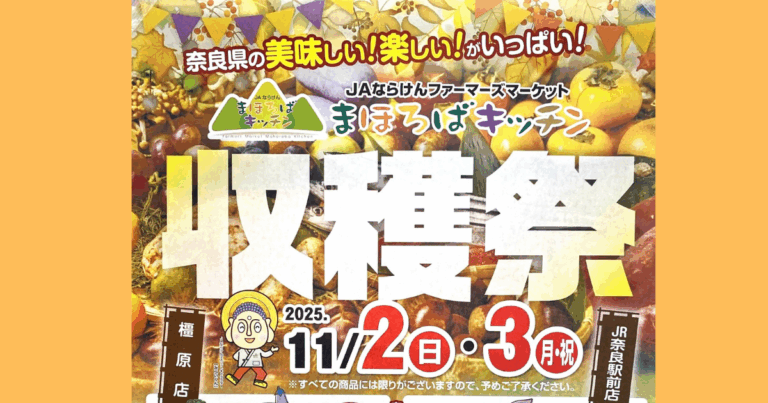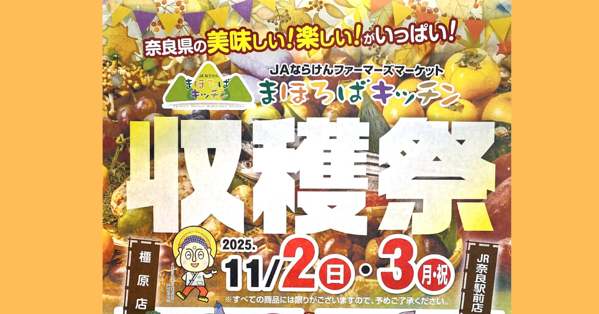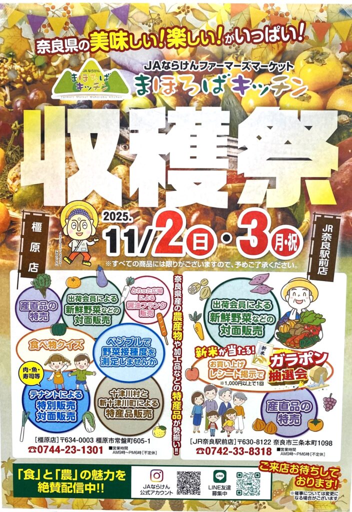 JAならけんファーマーズマーケット「まほろばキッチン」では、毎年恒例の人気イベント「収穫祭」が2025年11月2日(日)・3日(月・祝)に開催されます。