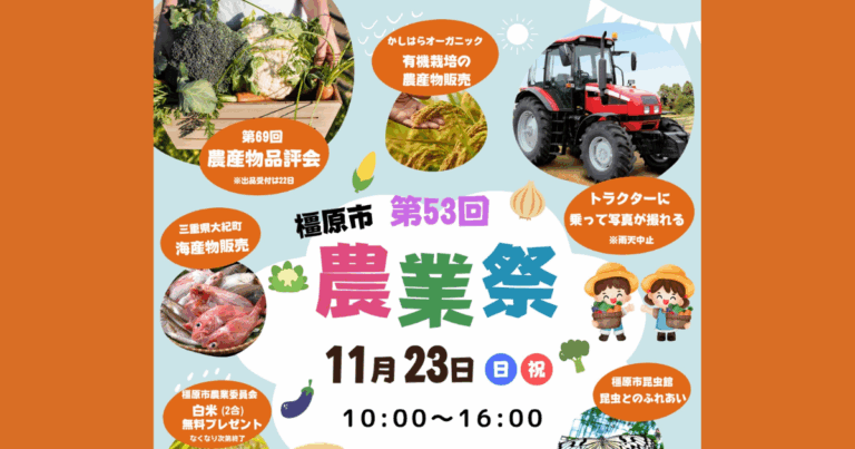 今年で第53回を迎える農業祭が、2025年11月23日(日・祝)10:00~16:00に開催されます。