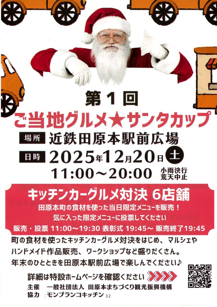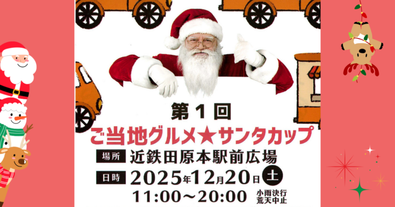 田原本町の食材を使った限定メニューが楽しめる、キッチンカーグルメ対決イベント「ご当地グルメ★サンタカップ」が初開催されます。
