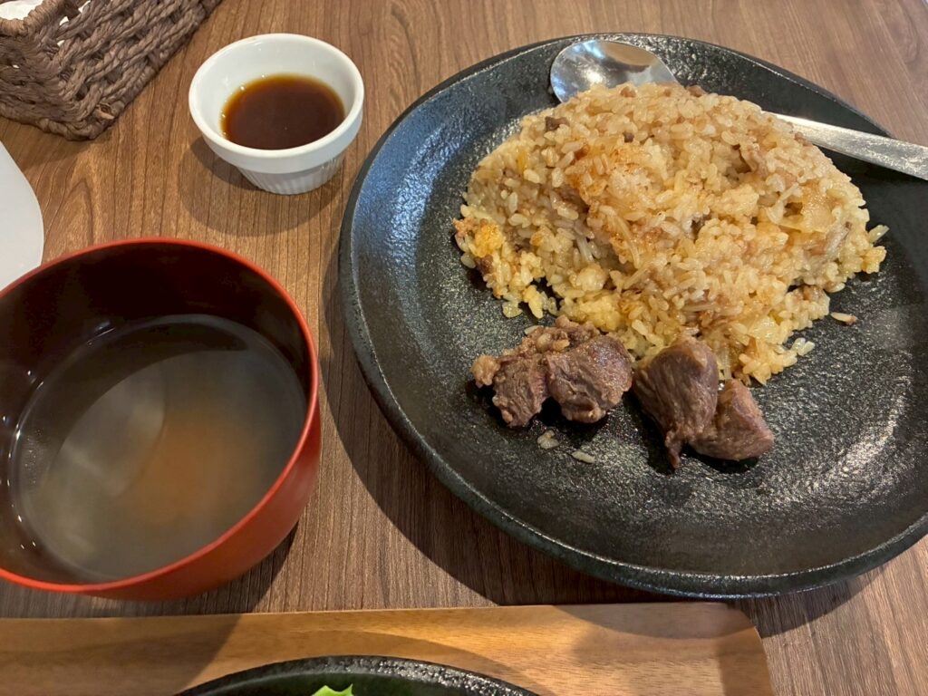 ステーキチャーハン(肩ロース50g)は、そぼろ肉がたっぷり混ぜ込まれていて、お肉のコクが感じられ、いくらでも食べられます。