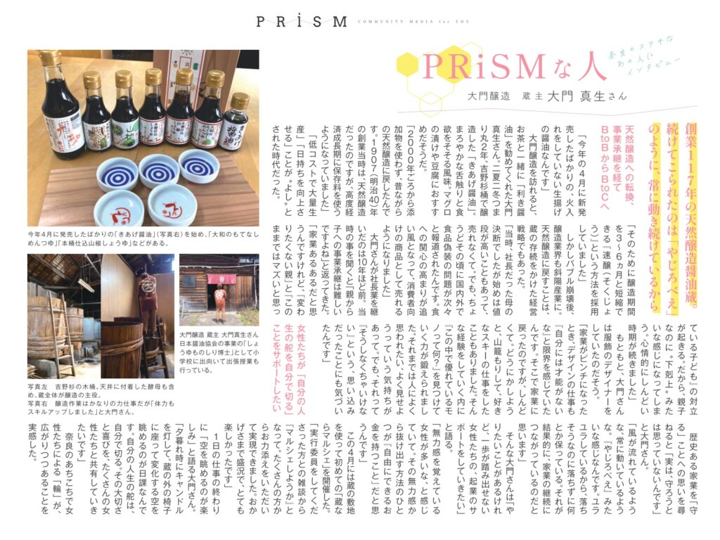 プリズム6号「プリズムな人」で蔵主 大門真生さんを取材させて頂きました。