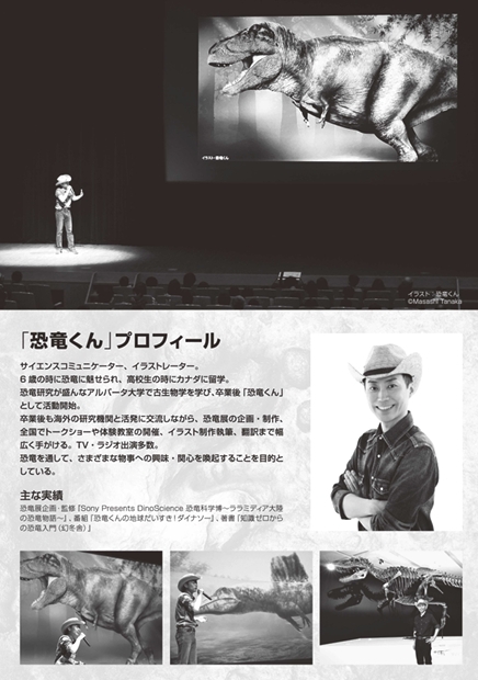 テレビや書籍でもおなじみの“恐竜くん”が、恐竜の素朴な疑問から最新の発掘・研究まで、クイズを交えながらとてもわかりやすく解説してくれるトークショーです。